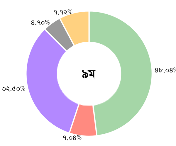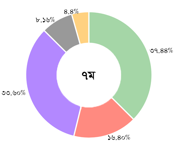 আওয়ামী লীগঃ ৪৮.০৪%, জাতীয় পার্টিঃ ৭.০৪%, বিএনপিঃ ৩২.৫০%, জামায়াতে ইসলামীঃ ৪.৭০%, অন্যান্যঃ ৭.৭২%